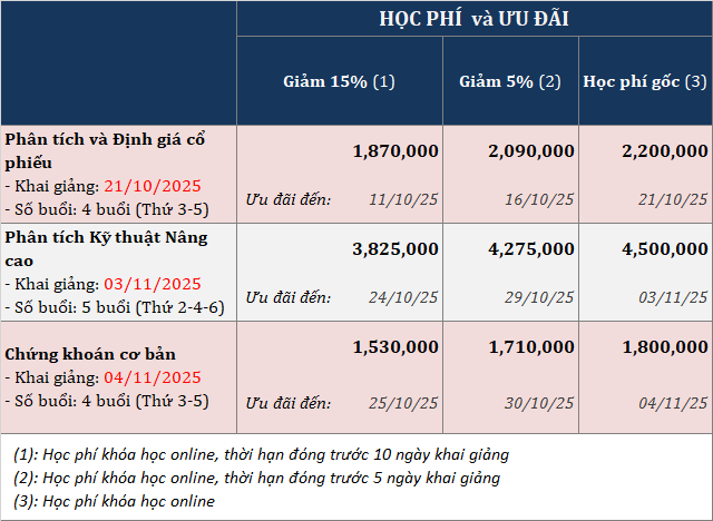 Hôm nay ngày cuối ưu đãi 30%++ khóa học online "Phân tích và định giá cổ phiếu" khai giảng 21/10/2025