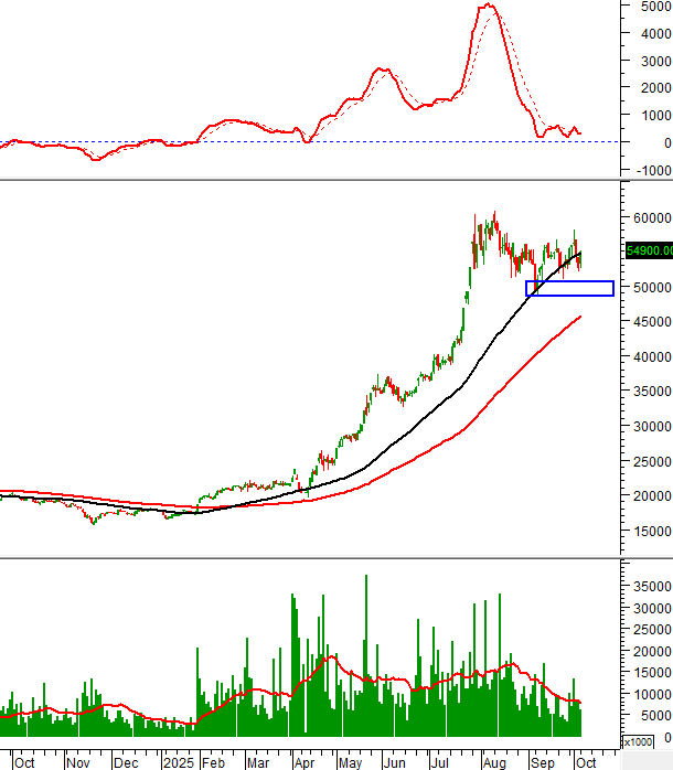 Đáy cũ tháng 09/2025 (tương đương vùng 48,500-50,500) sẽ đóng vai trò hỗ trợ trong ngắn hạn.