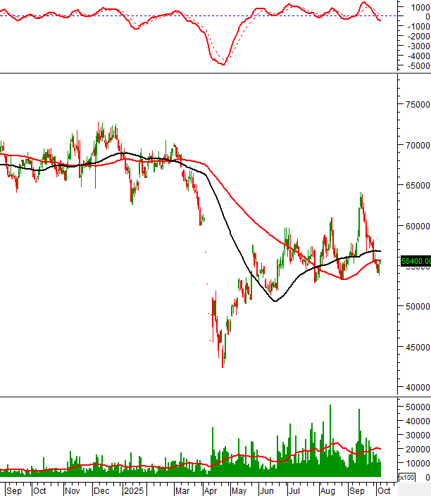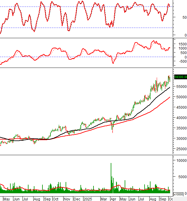 Giá cổ phiếu VHC tiếp tục tăng trong phiên giao dịch ngày 06/10/2025 sau khi xuất hiện mẫu hình Big White Candle vào cuối tuần trước.