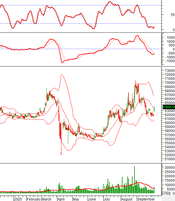 Giá đã vượt qua đường Middle của Bollinger Bands nên rủi ro ngắn hạn giảm bớt.