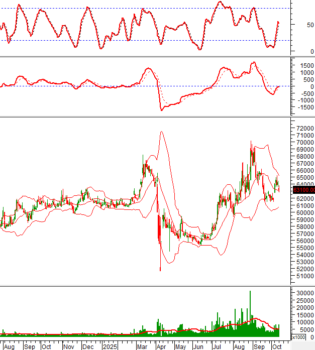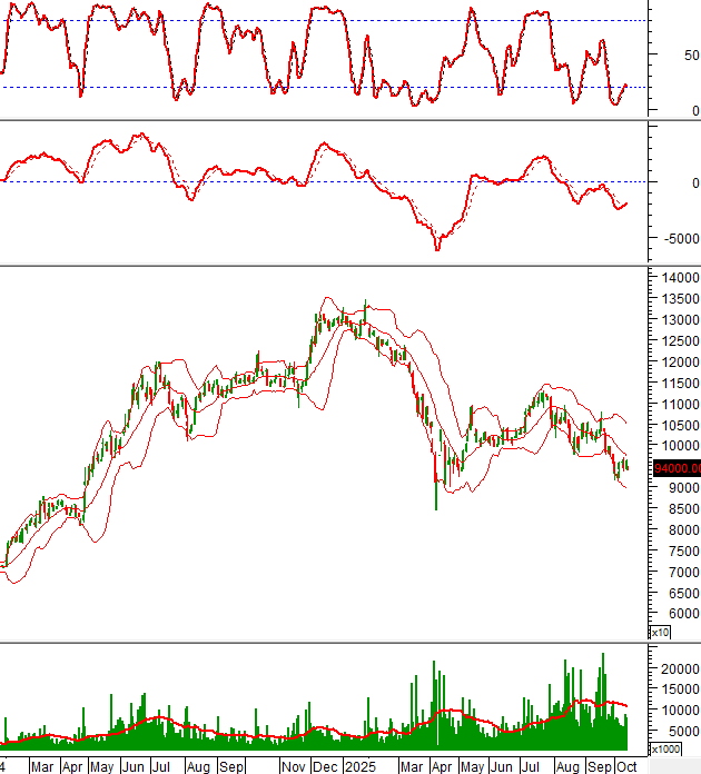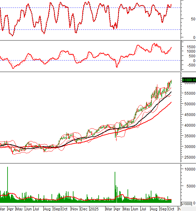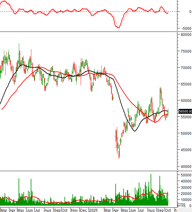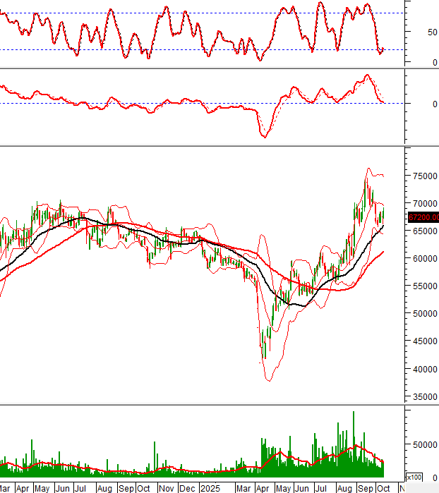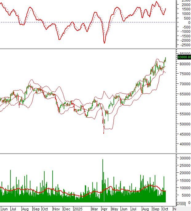 Chỉ báo MACD tiếp tục duy trì tín hiệu mua xuất hiện từ đầu tháng 10/2025.