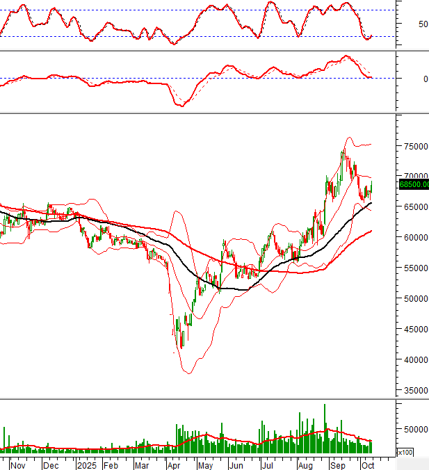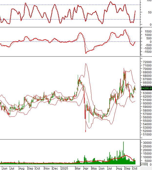 Giá cổ phiếu VHC tăng khá mạnh trong phiên giao dịch ngày 10/10/2025 với khối lượng bứt phá lên trên mức trung bình 20 ngày.