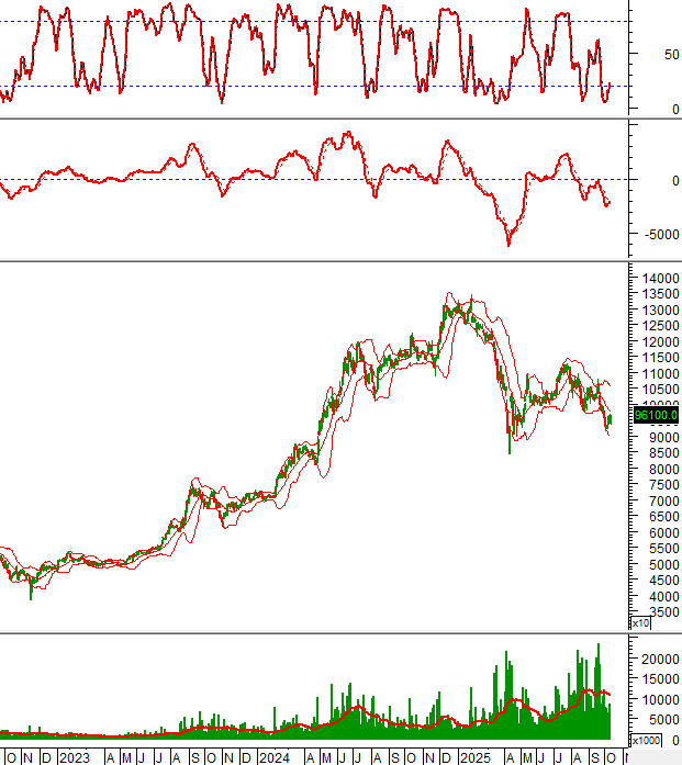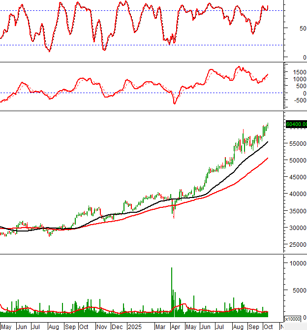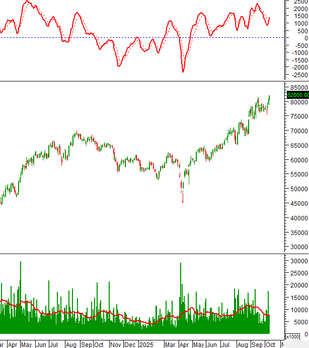 Chỉ báo MACD tiếp tục duy trì tín hiệu mua xuất hiện từ đầu tháng 10/2025.