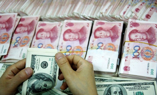 Nhân viên kiểm đồng USD và đồng nhân dân tệ. (Ảnh: AFP/TTXVN)