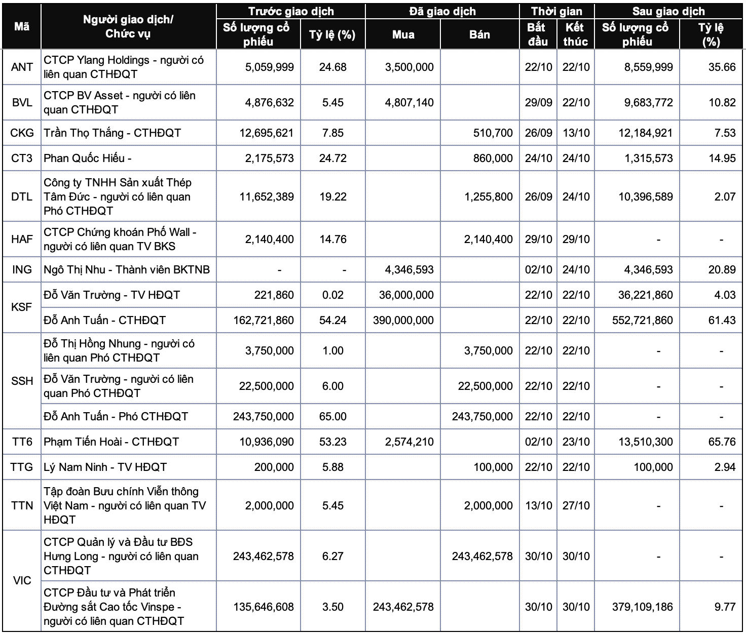 Danh sách lãnh đạo công ty và người thân giao dịch từ ngày 27-31/10/2025