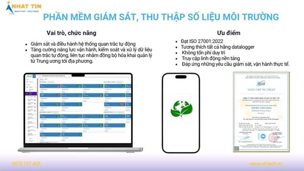 Đặc biệt, Nhất Tín ứng dụng công nghệ 4.0 trong các hệ thống quan trắc khí thải. Hệ thống được tích hợp phần mềm giám sát online, tự động thu thập – phân tích – cảnh báo dữ liệu theo thời gian thực, giúp doanh nghiệp quản lý tập trung, truy xuất báo cáo nhanh chóng và theo dõi từ xa qua máy tính, Android hoặc iOS. Nhờ đó, việc vận hành, kiểm soát khí thải và tuân thủ quy định môi trường trở nên thông minh, linh hoạt và hiệu quả hơn bao giờ hết.