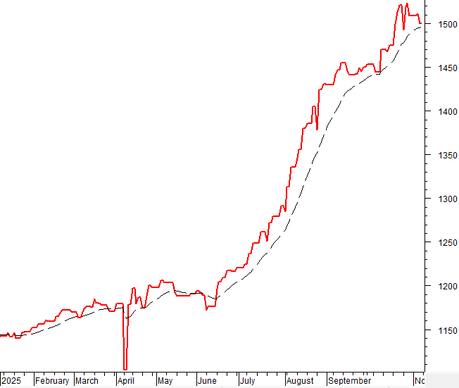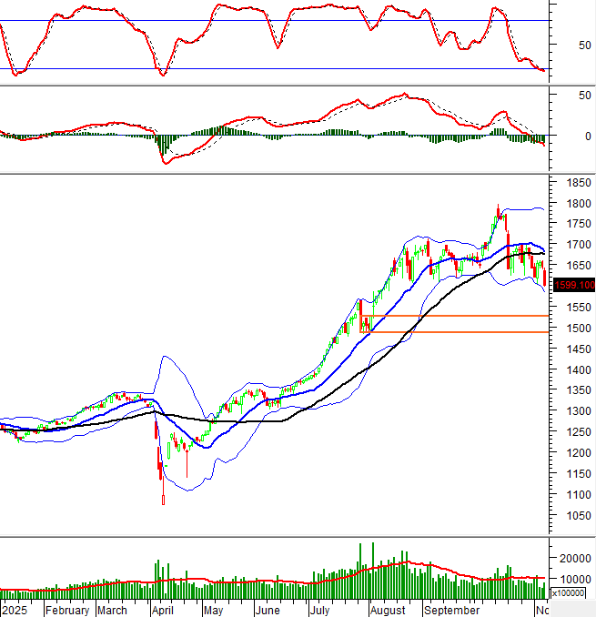 Trong phiên giao dịch ngày 07/11/2025, VN-Index giảm điểm phiên thứ 2 liên tiếp và tiếp tục nằm dưới đường SMA 50 ngày cùng khối lượng giao dịch gia tăng so với phiên trước đó cho thấy tâm lý bi quan của nhà đầu tư vẫn còn.