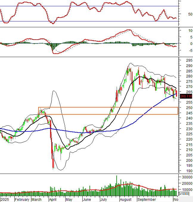 Nếu tình hình không có sự cải thiện thì vùng 243-250 điểm (tương đương với đỉnh cũ tháng 03/2025) sẽ là hỗ trợ tốt trong thời gian tới của HNX-Index.