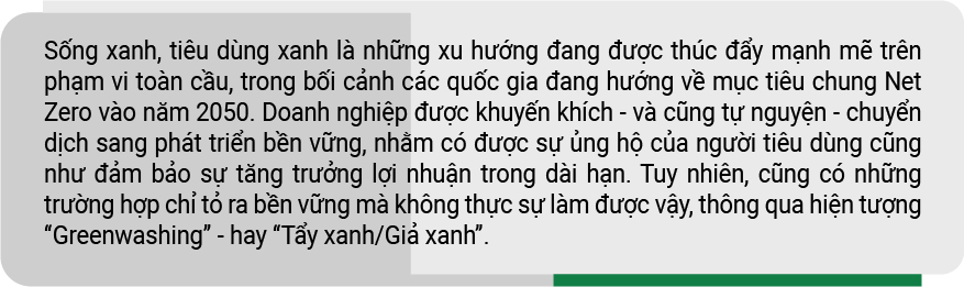 Bên cạnh đó là một cơ chế dành cho người tiêu dùng. Khi người tiêu dùng ngày càng thông minh hơn và được hỗ trợ bởi các cơ quan chức năng, một sản phẩm bị phát hiện tẩy xanh sẽ bị tẩy chay ngay lập tức. Niềm tin từ người tiêu dùng chính là động lực quan trọng để thúc đẩy sự minh bạch.