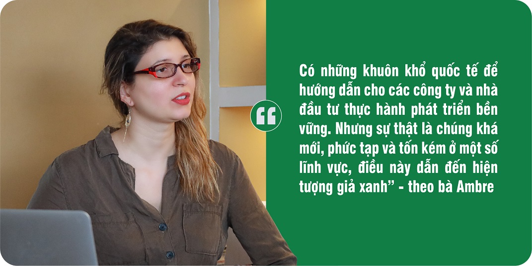 “Có những khuôn khổ quốc tế để hướng dẫn cho các công ty và nhà đầu tư thực hành phát triển bền vững. Nhưng sự thật là chúng khá mới, phức tạp và tốn kém ở một số lĩnh vực, điều này dẫn đến hiện tượng giả xanh” - theo bà Ambre.