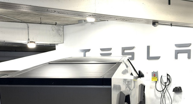 Một trạm sạc của Tesla bên trong tòa nhà ở thành phố Chicago. (Ảnh: Ngọc Quang/TTXVN)