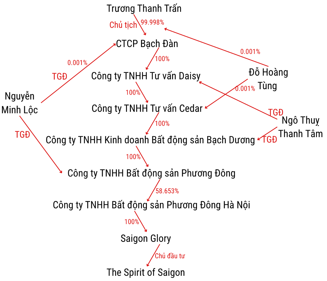 Công ty Bạch Đàn thành lập tháng 8/2024; trụ sở cũng tại số 67 Nguyễn Thị Minh Khai. Với một ngành nghề duy nhất là dịch vụ tư vấn quản lý, vốn điều lệ ban đầu 1 tỷ đồng; trong đó ông Trương Thanh Trấn – Chủ tịch HĐQT kiêm đại diện pháp luật nắm 99.998%, còn lại chia đều cho ông Đỗ Hoàng Tùng và ông Nguyễn Minh Lộc – Tổng Giám đốc kiêm đại diện pháp luật. Ông Lộc là Tổng Giám đốc BĐS Phương Đông.