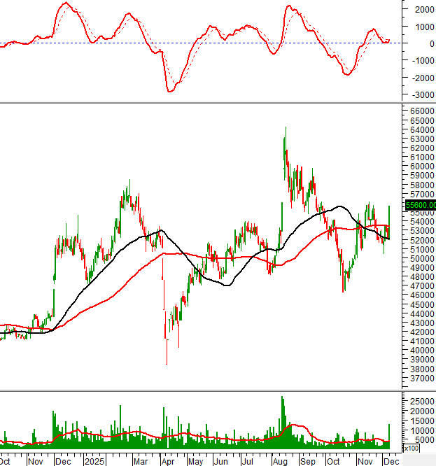 Giá BVH cũng đồng thời vượt qua SMA 50 ngày và SMA 100 ngày nên xu hướng tăng trưởng được củng cố vững chắc.