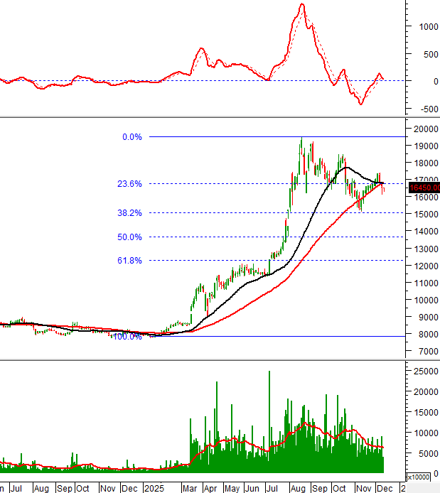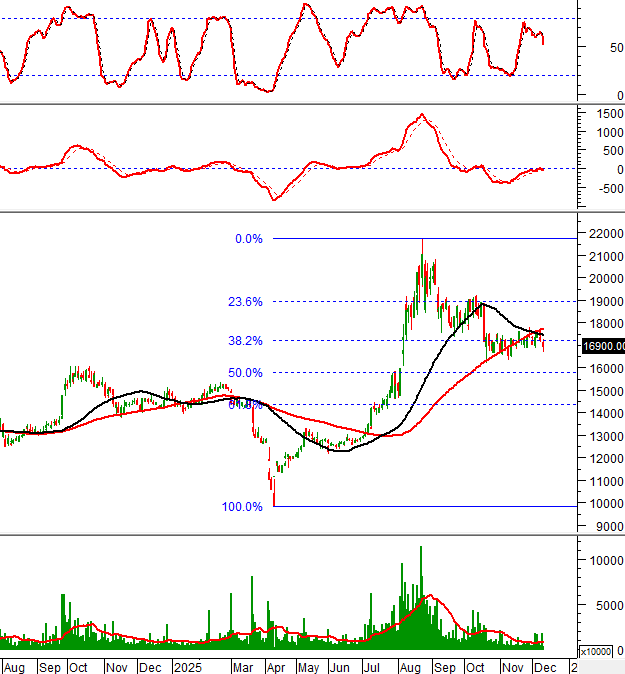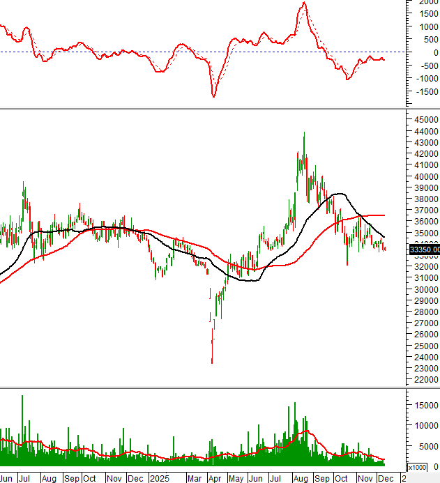 Khối lượng giao dịch tiếp tục nằm dưới mức trung bình 20 ngày trong bối cảnh các chỉ báo dao động quan trọng đều cho tín hiệu bán.
