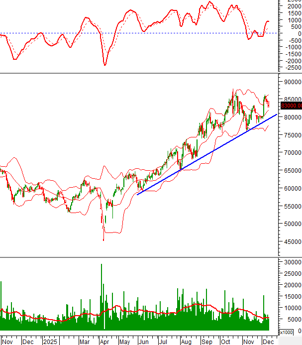 Đường trendline ngắn hạn (tương đương vùng 79,000-80,500) đóng vai trò hỗ trợ hiệu quả trong đợt điều chỉnh vừa qua và được kỳ vọng sẽ tiếp tục trụ vững trong thời gian tới.
