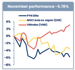 Tháng 11/2025, quỹ ngoại PYN Elite Fund ghi nhận hiệu suất đầu tư giảm 5.78% - mức giảm mạnh nhất kể từ tháng 4/2024.