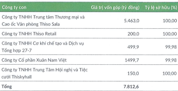 Với 5 công ty con, ngoài siêu thị, cho thuê văn phòng, trung tâm hội nghị cũng trở thành nguồn thu lớn cho THISO. Định hướng phát triển của Công ty là phát triển các khu phức hợp gồm: văn phòng, trung tâm thương mại, trung tâm hội nghị, siêu thị, nhà hàng…