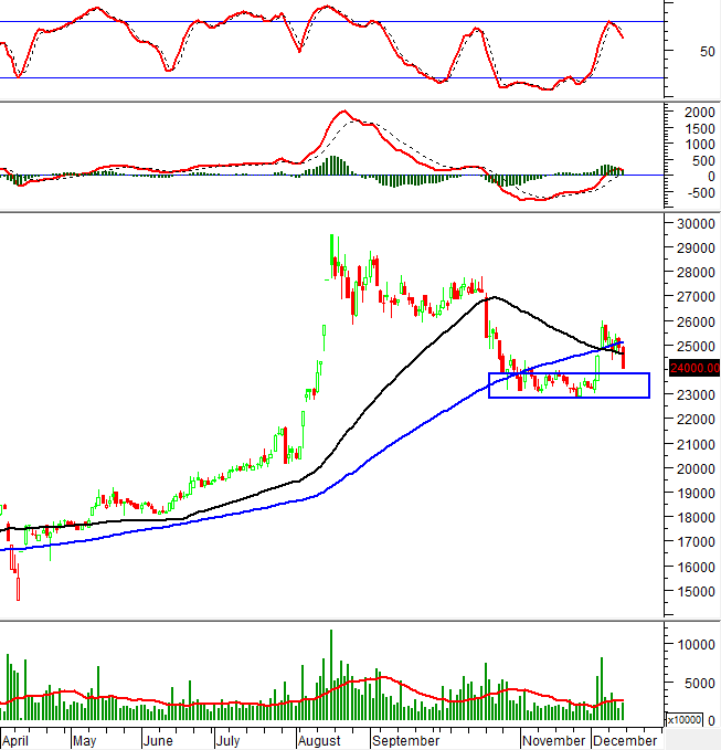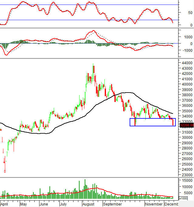 Khối lượng giao dịch tiếp tục nằm dưới mức trung bình 20 ngày trong bối cảnh các chỉ báo dao động quan trọng đều cho tín hiệu bán.