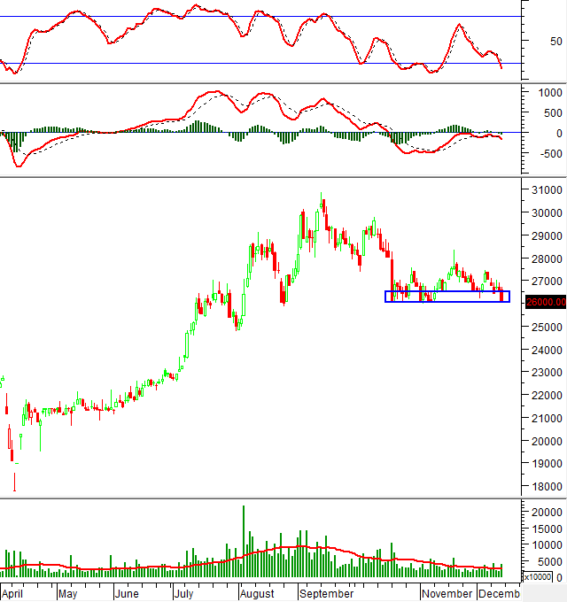 Đáy cũ tháng 10/2025 (tương đương vùng 26,000-26,500) đang đóng vai trò hỗ trợ mạnh.