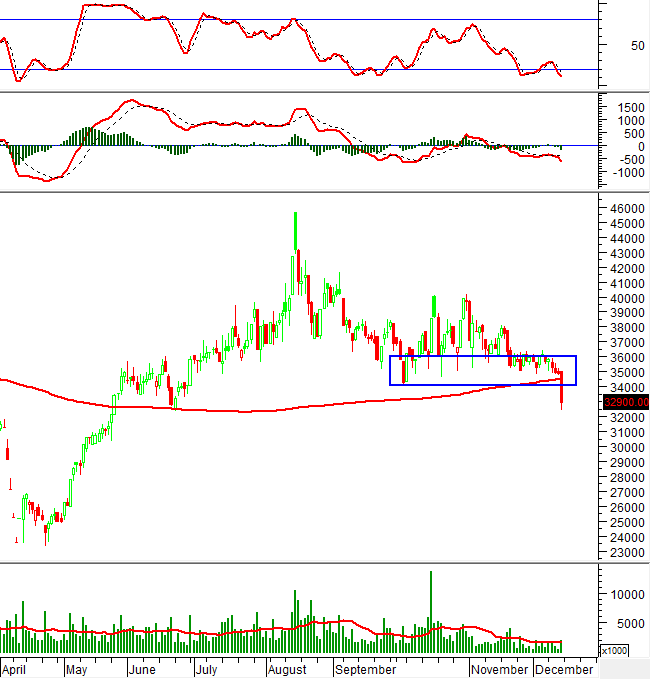 Đáy cũ tháng 10/2025 (tương đương vùng 34,000-36,000) đã bị phá vỡ hoàn toàn nên sẽ đóng vai trò kháng cự trong thời gian tới.