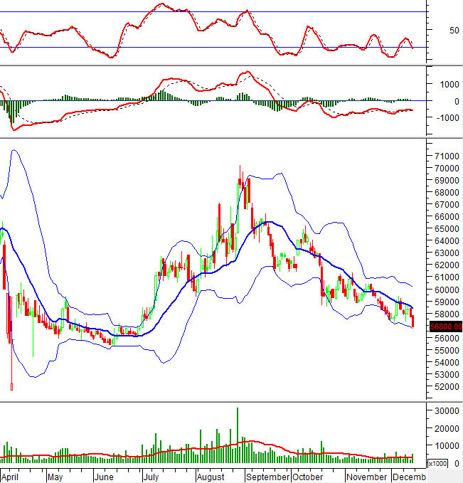 Do giá đang ở khá sát Lower Band của Bollinger Bands nên dự kiến sẽ tiếp tục giảm khi dải này bung nén.