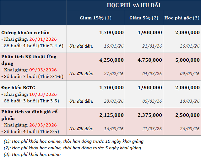 - 4 khóa trở lên/hoặc là hội viên VAFE: Giảm thêm 20%