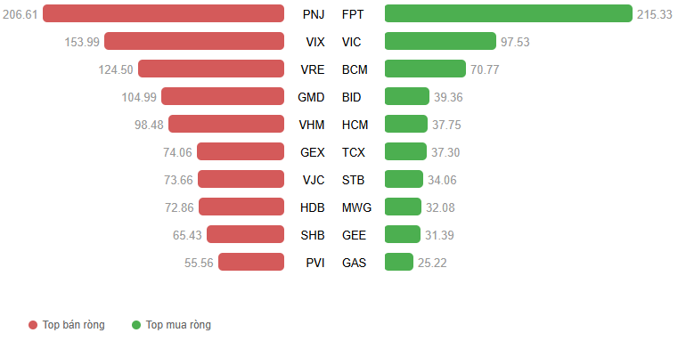 Giá trị giao dịch ròng theo mã cổ phiếu. Đvt: Tỷ đồng