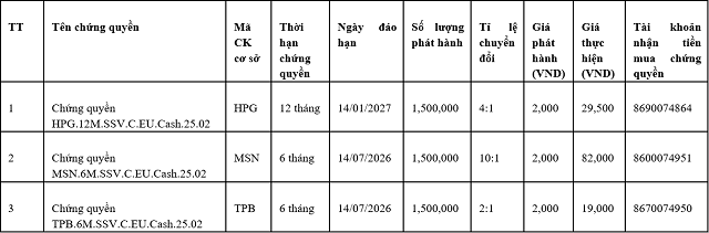 2. Thông tin về chứng quyền có bảo đảm do SSV phát hành: