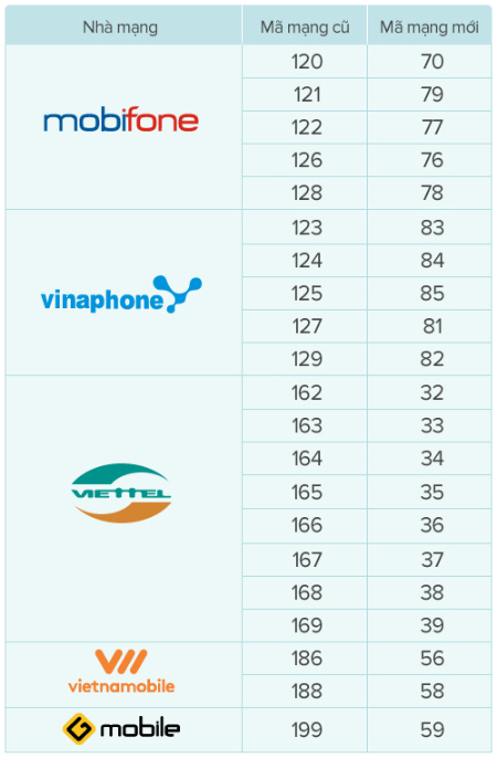 Kế hoạch chuyển đổi mã mạng thuê bao 11 số về 10 số sẽ bắt đầu từ 0h ngày 15/9/2018 với ba giai đoạn và hoàn tất sau ngày 30/6/2019 (gần đây đã có nhà mạng chuyển thử nghiệm một số thuê bao). Theo đó, các thuê bao 11 số của Viettel được chuyển từ 016x sang 03x; Vinaphone chuyển từ 012x sang 08x và MobiFone chuyển từ 012x sang 07x.