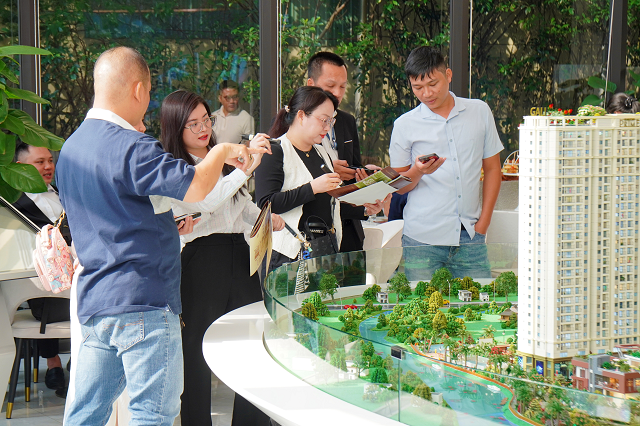 Khách hàng tìm hiểu thông tin dự án tại khu vực sa bàn