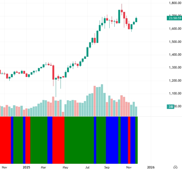 Tuy nhiên, khi bước sáng tháng 05/2025 thì tình hình đã có cải thiện. Elder Impulse System đã chuyển sang màu xanh lá cây và giữ trạng thái này trong suốt nhiều tháng. Rõ ràng, các hệ thống sẽ giúp nhà đầu tư ra các quyết định khách quan và chính xác.