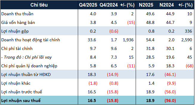 Kết quả kinh doanh quý 4 và cả năm 2025 của LGL. Đvt: Tỷ đồng
