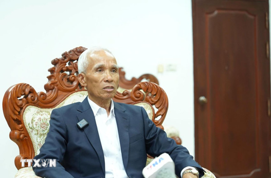 Trưởng ban Tuyên huấn Trung ương Đảng nhân dân cách mạng Lào Khamphan Pheuinhavong trả lời phỏng vấn TTXVN. (Ảnh: Xuân Tú/TTXVN)