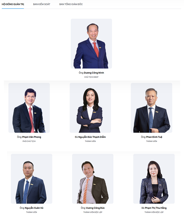 Hiện, HĐQT Sacombank gồm 7 thành viên: Chủ tịch HĐQT Dương Công Minh; Phó Chủ tịch HĐQT Phạm Văn Phong; 3 thành viên HĐQT gồm bà Nguyễn Đức Thạch Diễm, ông Phan Đình Tuệ, ông Nguyễn Xuân Vũ; 2 thành viên độc lập là ông Vương Công Đức và bà Phạm Thị Thu Hằng.