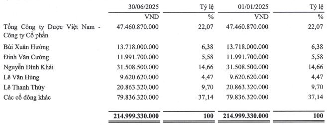 Với tỷ lệ 40% (4,000 đồng/cp), Công ty dự kiến chi gần 86 tỷ đồng để trả cổ tức. Tổng Công ty Dược Việt Nam (DVN) là cổ đông lớn nhất của DP3 với tỷ lệ sở hữu 22.07%, sẽ nhận gần 19 tỷ đồng cổ tức trong đợt chia này.