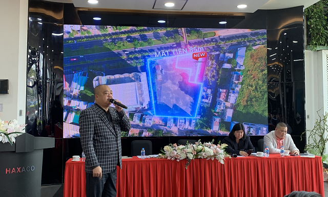 Chủ tịch HAX Đỗ Tiến Dũng trình bày về mảnh đất ở đường Võ Văn Kiệt tại đại hội thường niên 2025 - Ảnh: Tử Kính