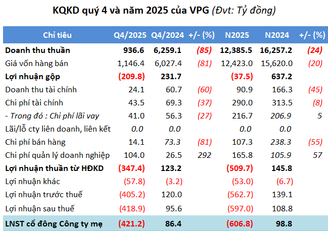 | VPG khép lại năm 2025 với thua lỗ kỷ lục | ||