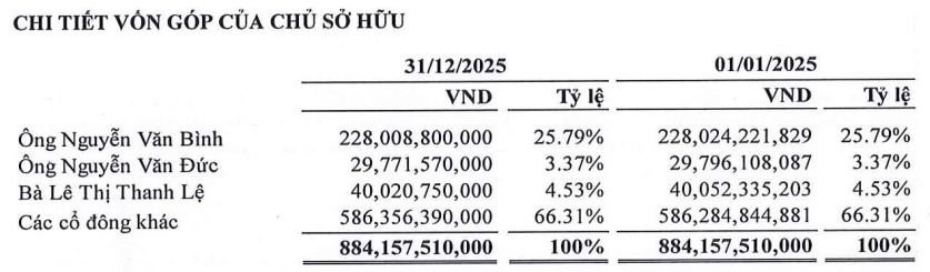 Thời điểm cuối 2025, cựu Chủ tịch VPG Nguyễn Văn Bình đang là cổ đông lớn nhất sở hữu 25.79%.