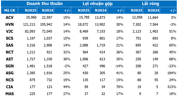 Kết quả kinh doanh năm 2025 của các công ty trong lĩnh vực hàng không