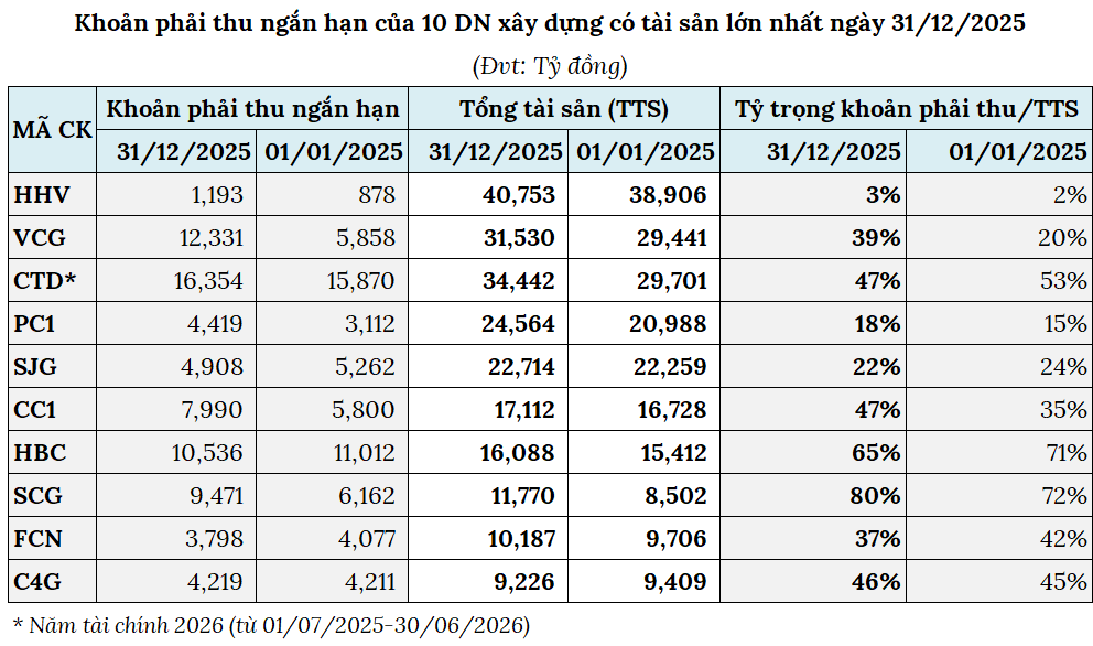 Thách thức lớn nhất của nhóm doanh nghiệp xây dựng là vấn đề thu hồi công nợ. Tính đến cuối năm 2025, tổng các khoản phải thu ngắn hạn của 99 doanh nghiệp xây dựng gần 137.8 ngàn tỷ đồng, tăng 22% đầu năm; trong đó phần lớn là phải thu từ khách hàng.