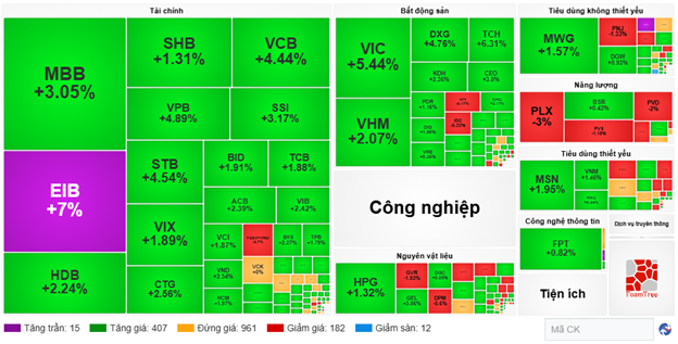 10h40: Sắc xanh lan rộng khắp thị trường, EIB tỏa sáng
