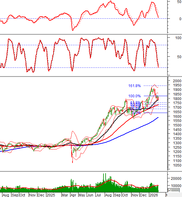 Vùng 1,750-1,805 điểm (tương đương đỉnh cũ đã bị phá vỡ của tháng 10/2025 và tháng 12/2025) đang đóng vai trò hỗ trợ ngắn hạn.