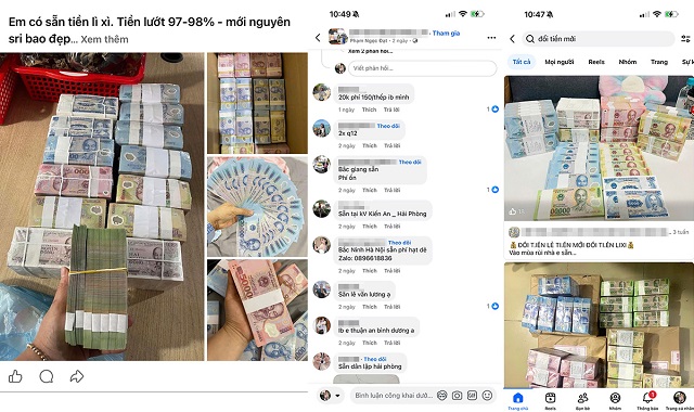 Chính vì tâm lý "nhất định phải có tiền mới", nên khi nguồn cung tại các ngân hàng thương mại khan hiếm, người dân buộc phải tìm đến các kênh không chính thống. Những ngày cận Tết, chỉ cần lướt nhẹ trên Facebook hay Zalo, không khó để bắt gặp các hội nhóm "Đổi tiền mới nguyên seri", "Tiền lẻ giá rẻ" hoạt động tấp nập.