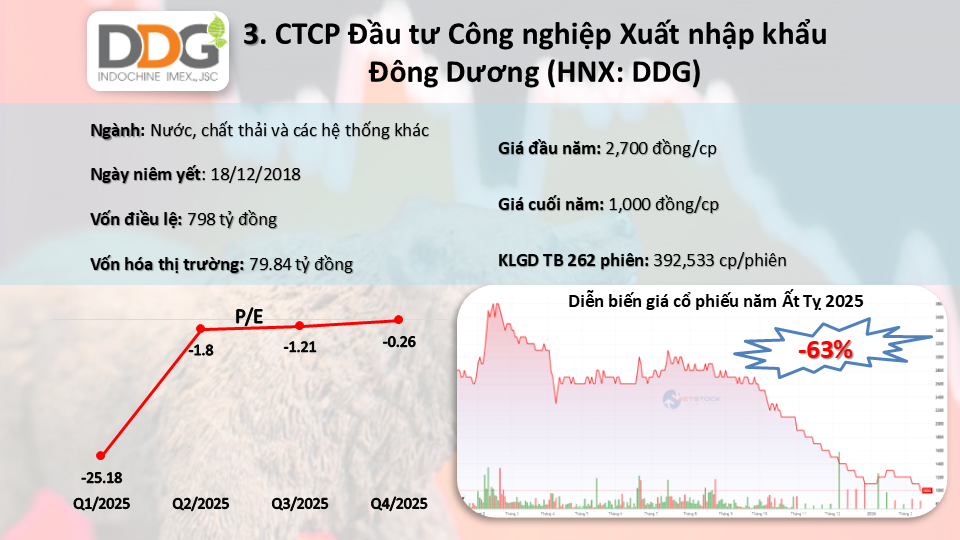 Diễn biến giá cổ phiếu DDG trong nửa đầu Ất Tỵ 2025 không quá đặc biệt, tuy nhiên kể từ tháng 8/2025, cổ phiếu này lao dốc mạnh, sau đó không lâu là sự thưa thớt dần của thanh khoản kể từ đầu tháng 10. |