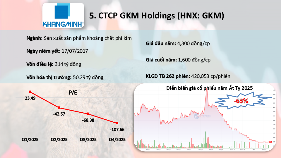 VN-Index đã có một năm Ất Tỵ 2025 hết sức thành công khi tăng gần 44%, kết thúc năm ở mốc 1,820 điểm. Dù vậy, vẫn có nhiều cổ phiếu nằm ngoài đà tăng chung, quay đầu giảm mạnh trong năm qua.