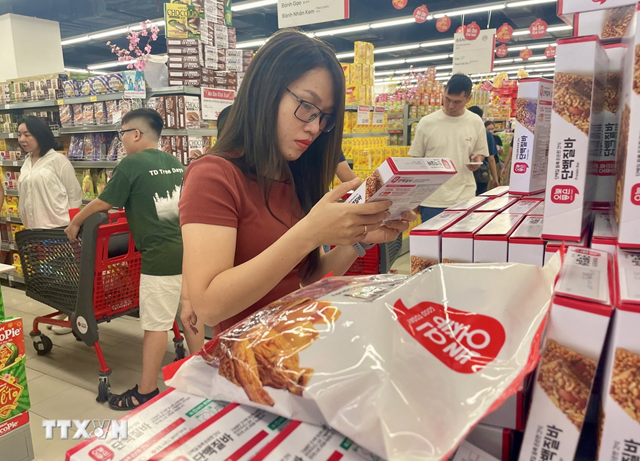 Bánh kẹo, nước giải khát là nhóm hàng có sức tiêu thụ mạnh tại các hệ thống siêu thị. (Ảnh: Hương Giang/TTXVN)