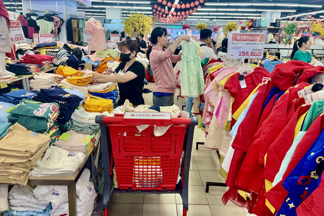 Đại diện hệ thống LotteMart Việt Nam cho biết, sức mua tăng gấp 3-4 lần trong 2 ngày cận Tết. Hàng hoá liên tục được đưa lên quầy kệ, mặt bằng giá được giữ bình ổn, nhiều nhãn hàng giảm giá sâu để phục vụ người dân sắm Tết.
