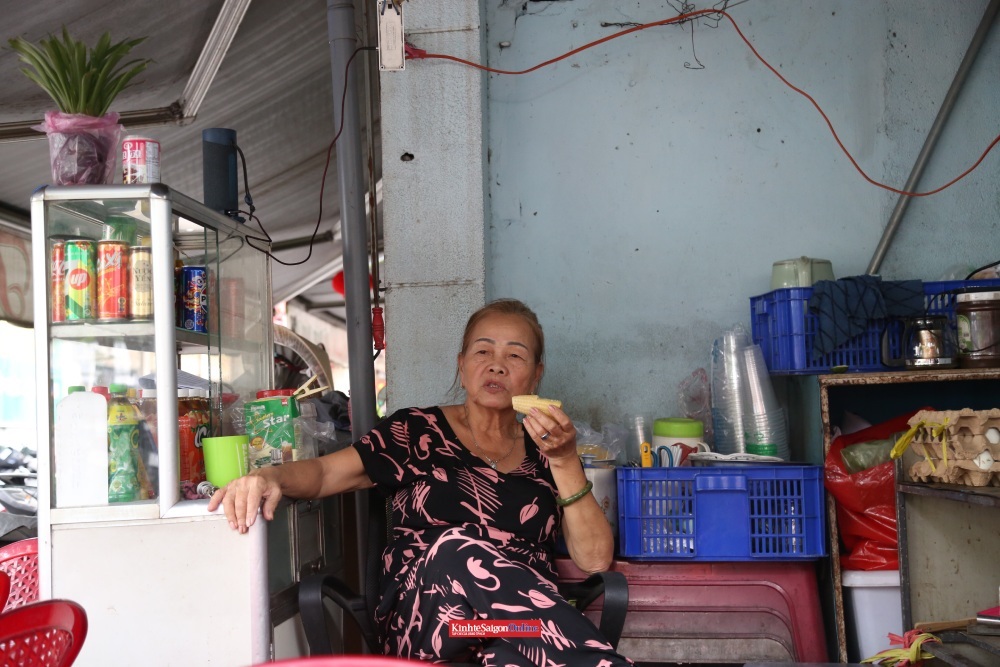 Ngồi bên quán nước nhỏ dưới tầng trệt lô X, cô Xuân sinh sống tại khu vực này từ trước năm 1980.