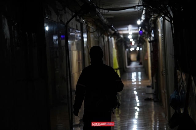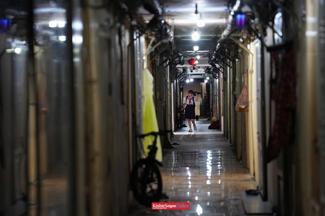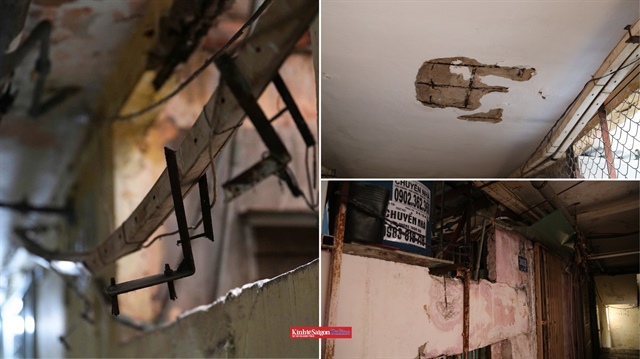 Nhà ở khu vực này đã xuống cấp, tường nứt, dây điện chằng chịt. Các lối đi chật hẹp, thiếu ánh sáng, người dân phải bật đèn ngay cả vào ban ngày. |